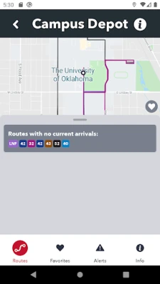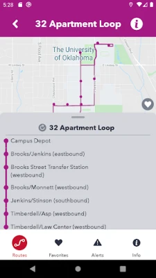 Provides real time tracking of Cleveland Area Rapid Transit (CART) buses serving the Oklahoma University campus in Norman, OK. Allows users to save favorite stops and create automatic reminders for bus arrival times. Displays up to the date announcements regarding service changes, weather delays, and other news.