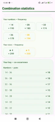 • Statistics — hot/cold frequencies, overdue, repeats, even/odd, runs, co-occurrences and star patterns.