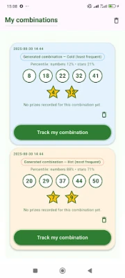 Combination Tracker helps you follow lottery draws, check your tickets and manage your Wallet: log bets and prizes and track your balance with simple charts. It starts with EuroMillions and is ready to support more lotteries over time.