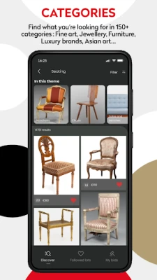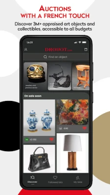 On DROUOT.com, discover vintage furniture, antique paintings, fashion accessories, jewelry, fine wines and sculptures. Over 700 European auctioneers present nearly 3 million authenticated and appraised works of art and collectibles each year, accessible to all budgets. Discover surprising and inspiring objects as if you were in the famous Hôtel Drouot in Paris, in an auction room in France or elsewhere in the world. The drouot.com application offers live sales (live broadcasts of physical sales) and online-only sales (entirely dematerialized).