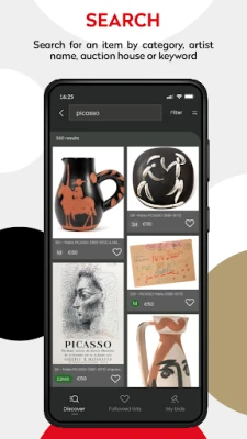 Search for an object by category, artist name, auction house or keyword from early paintings to contemporary art, from design to classic furniture, from lithographs to photographs, from watches to branded jewelry.