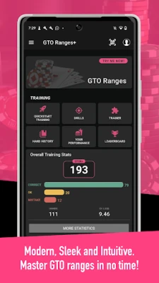 GTO Ranges+ is a poker coaching GTO app to instantly access professionally solved AI multi-way ranges for various game types including cash game, MTTs and Spin and Gos and for variety of stack sizes. The app is a ever-growing library of poker ranges. All of which is conveniently accessible to you within seconds!
