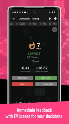 - Huge library of multi-way AI poker sims for all different poker nuances such as rakes, players, stack depth, game variations and more.