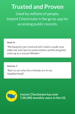 Quickly vet people on-the-go with Instant Checkmate’s background check app. Is an online seller legit? Should you get face-to-face with an online match? Find out more about almost anyone — from the people, you know to those you don’t. Lookup yourself to find out what’s “out” there about you!