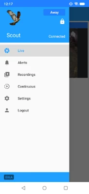 The Scout App for accessing a Scout server, which is a standalone open source software solution for DIY video security. The Scout App allows the user to view video security monitors and receive alerts through a mobile device.