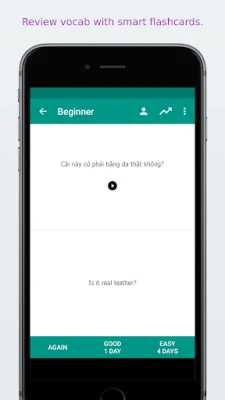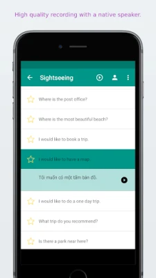 All Vietnamese phrases and words are presented to you in both phonetic and original Vietnamese writing. They are recorded by a native speaker from Vietnam.