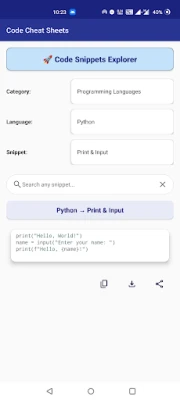 ►Code Sheets for almost all languages and Technologies available in the app✦