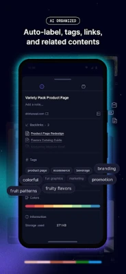 Skip organizing as Spaceduck does it for you! All your saved items automatically tagged, titled, embedded, color extracted(if possible), organized and connected to related contents.