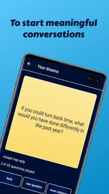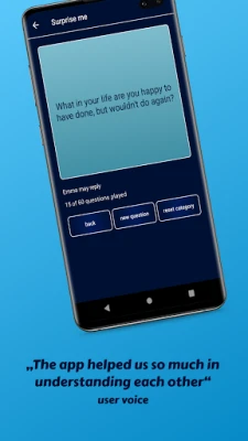 Studies also show that couples in long-term relationships are particularly happy when they are able to communicate well with one another. Talk2You: The conversation starter app for couples encourages you to get into conversation quite differently. Maybe you can clarify the one or the other misunderstanding.