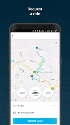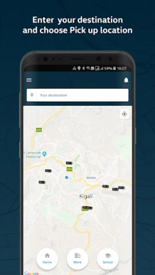 - The app will request you to enter your destination and choose your pick up location